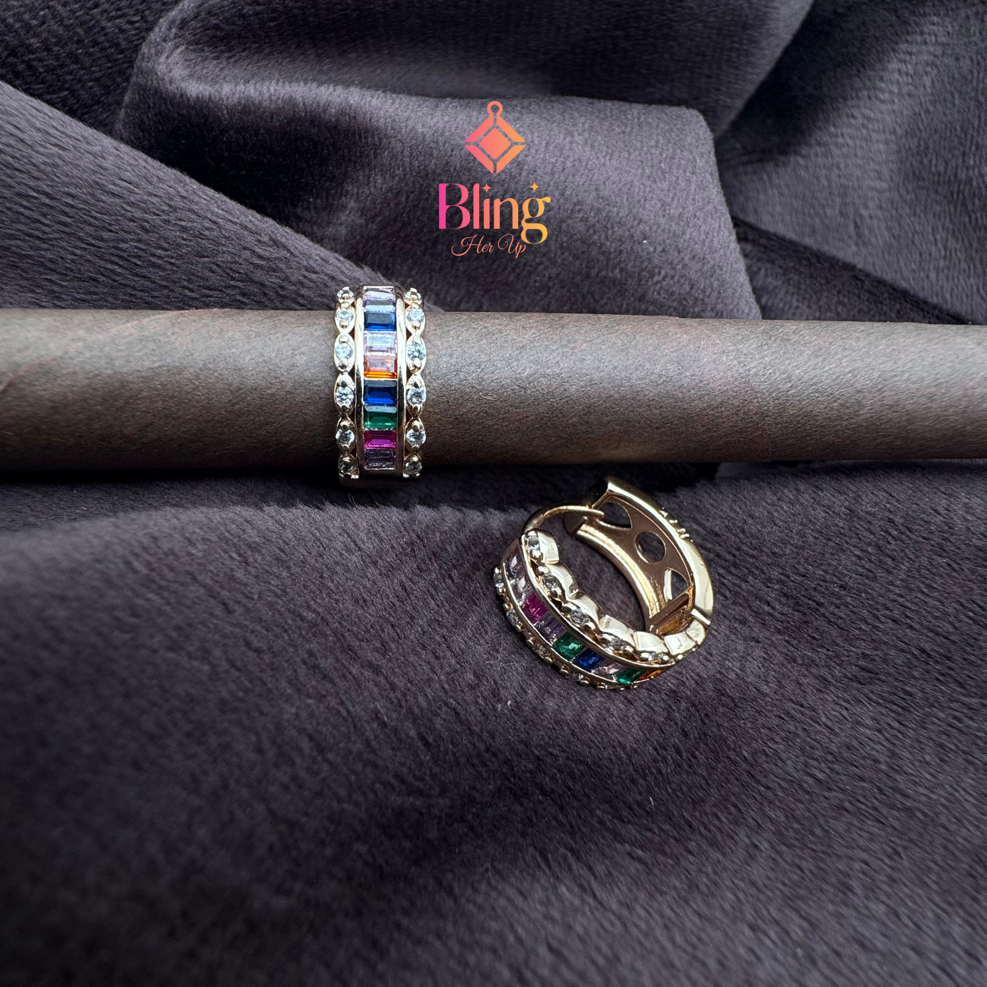 Add a kaleidoscopic twist to your glam routine with the Prism Baguette Sparkle Hoops. These anti-tarnish rose gold earrings are lined with vibrant, precision-cut baguette stones framed by delicate crystal accents. Crafted for the modern woman who loves a splash of color and a hint of luxury, these hoops are a perfect mix of fun, finesse, and functional wearability. Ideal for turning everyday moments into style statements.