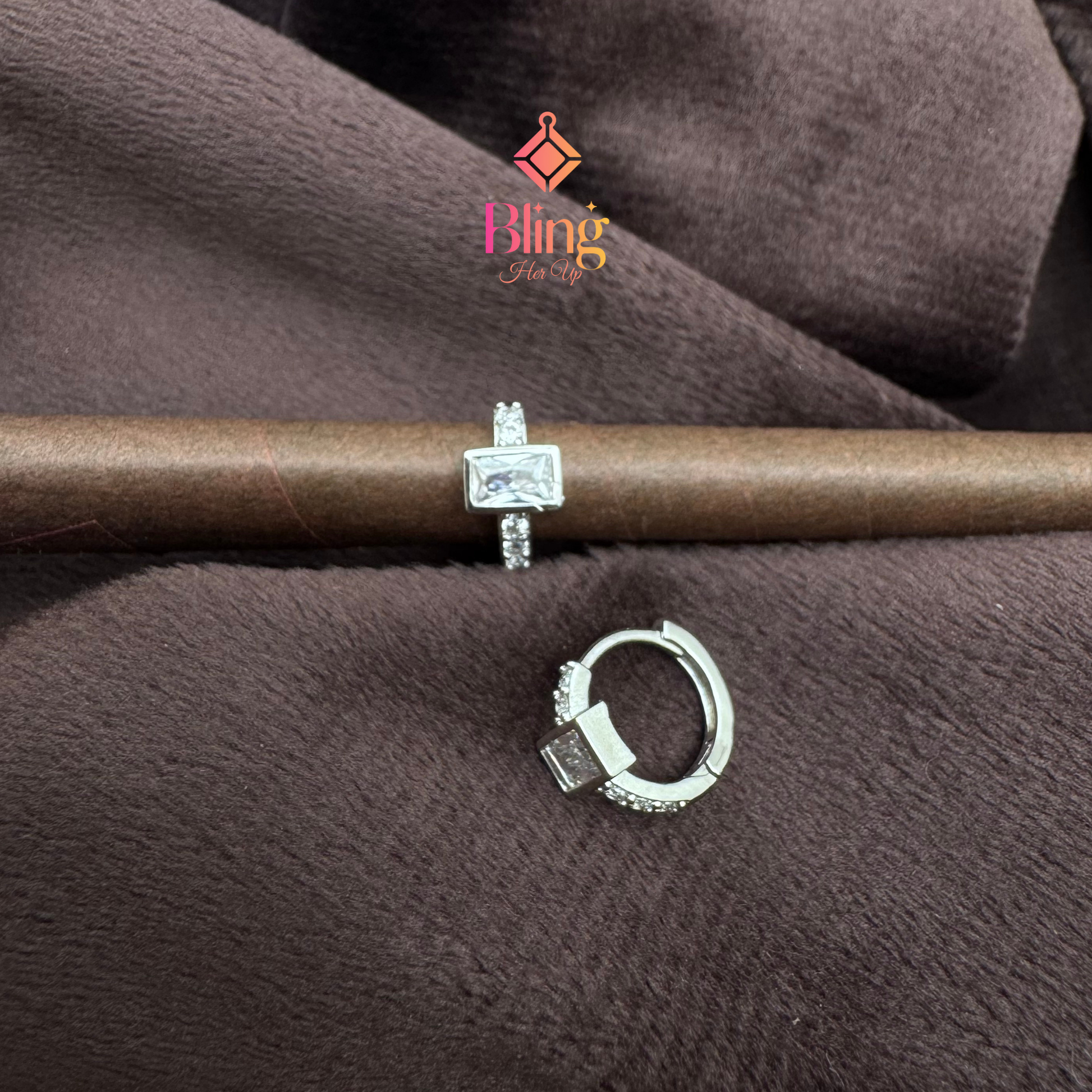 Clean lines, radiant sparkle, and sculpted elegance. These rectangular-stone huggie earrings channel effortless sophistication with their sleek design and crystal-studded band. Crafted in hypoallergenic metal and finished with an anti-tarnish coating, they offer lasting brilliance and comfortable wear. Whether styled with a crisp shirt for the office or a slip dress for the evening, they make a bold yet refined statement. Understated luxury—reimagined for the modern muse.