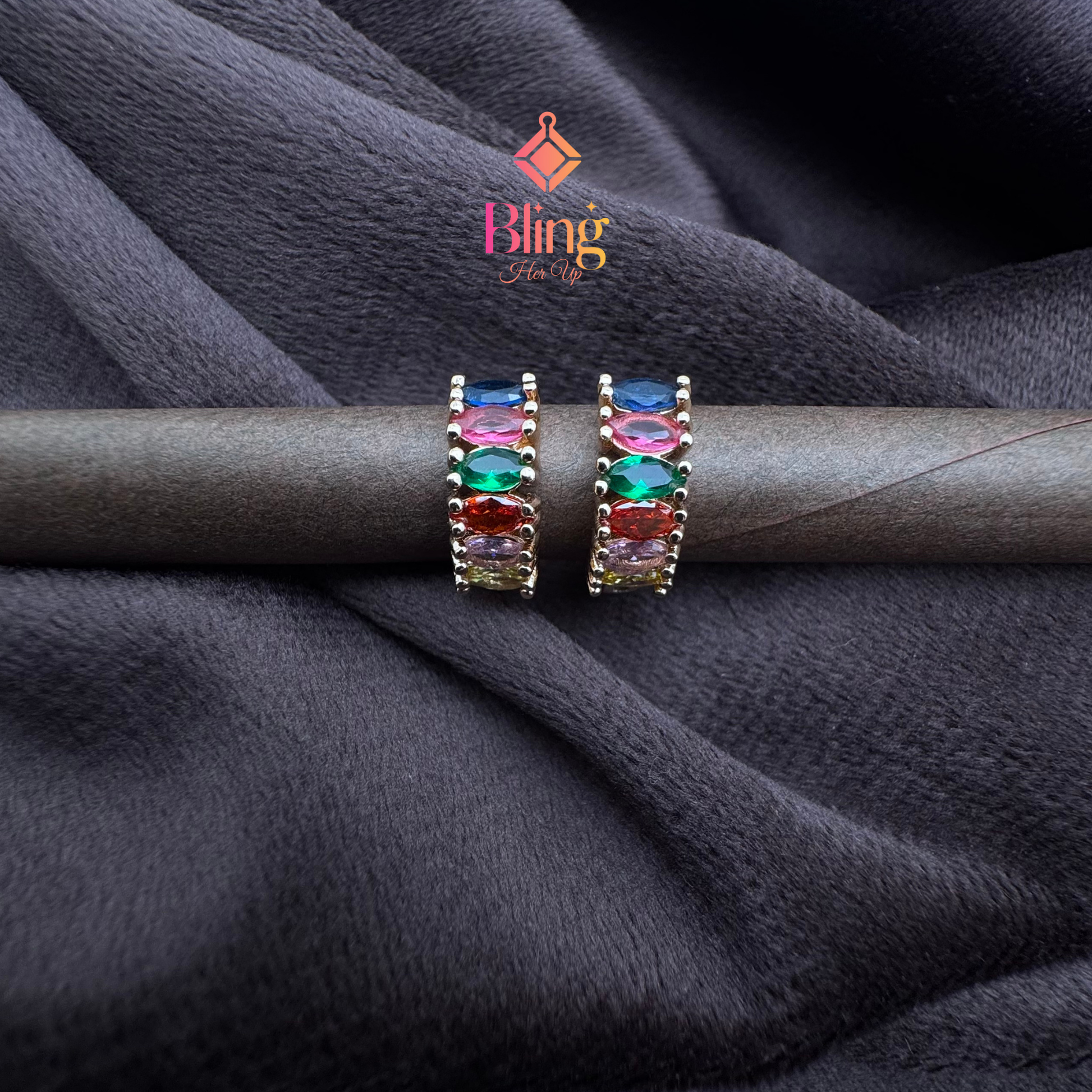 Indulge in refined radiance with our Rose Luxe Multi-Stone Gemstone Elegance – a captivating pair of anti-tarnish rose gold earrings that celebrates modern femininity in full color. Adorned with a mesmerizing arrangement of oval-cut, multi-hued stones, these earrings add a soft yet striking glow to any look. The blush-toned rose gold setting enhances the vibrancy of each gem, crafted with precision for a flawless finish. Designed for the woman who transitions from boardroom to bar with effortless style, these hoops are a wardrobe essential for daily glam or special soirées.