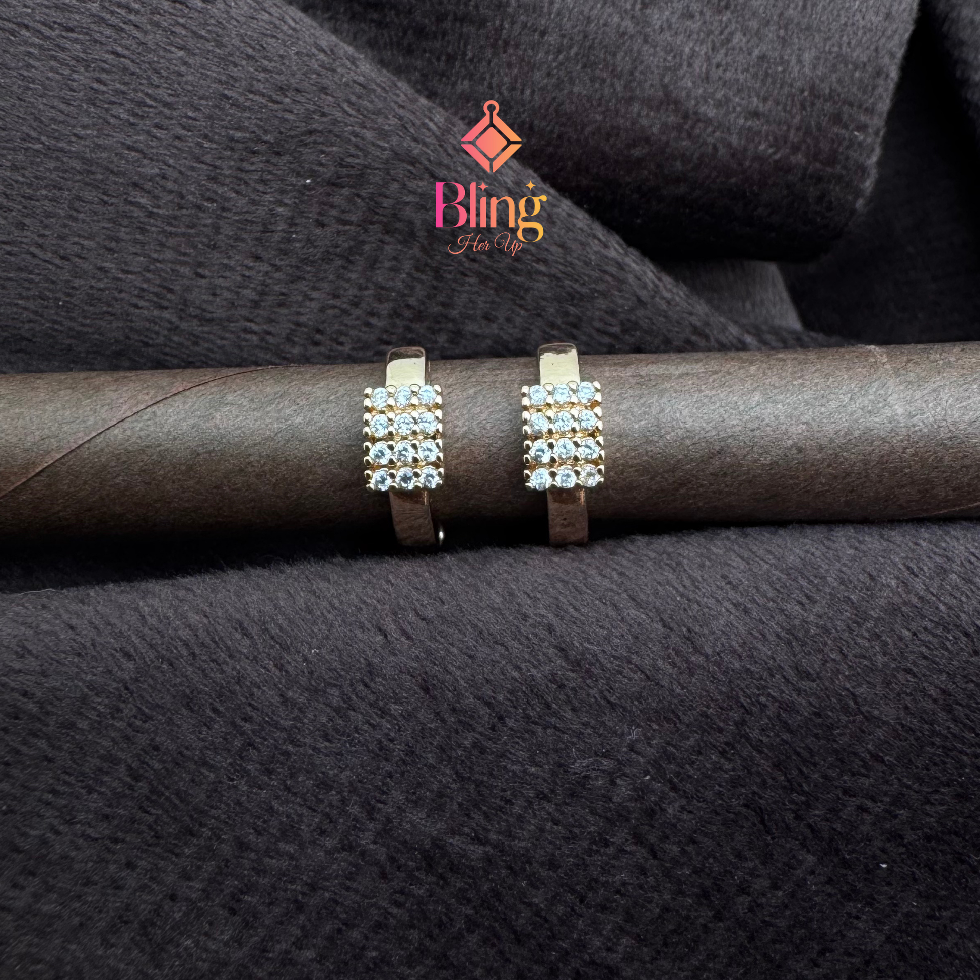 Dazzling in every detail, these triple-row cubic zirconia earrings exude understated glamour with a modern blush-toned twist. Designed in a radiant anti-tarnish rose gold finish, they offer the brilliance of layered sparkle without the weight. Perfect for women who love their shine refined and their style effortlessly polished, these earrings move seamlessly from AM meetings to PM martinis.